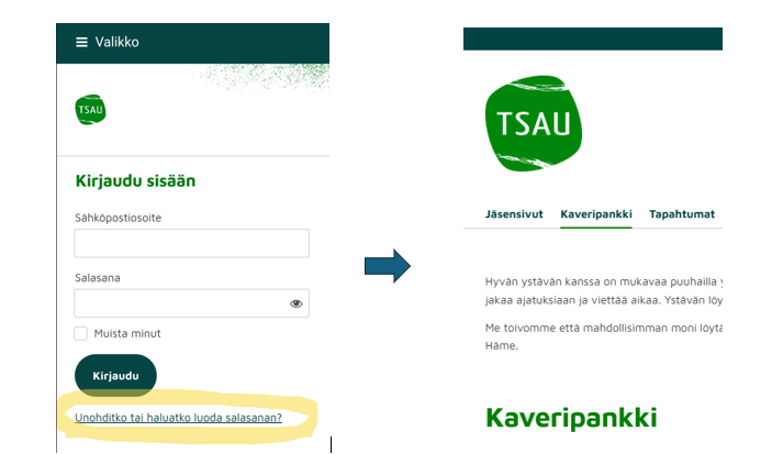 Kaveripankki löytyy jäsensivuilta. Jos etsit uusia ystäviä, käy tutustumassa pankin toimintaan ja täytä lomake.
