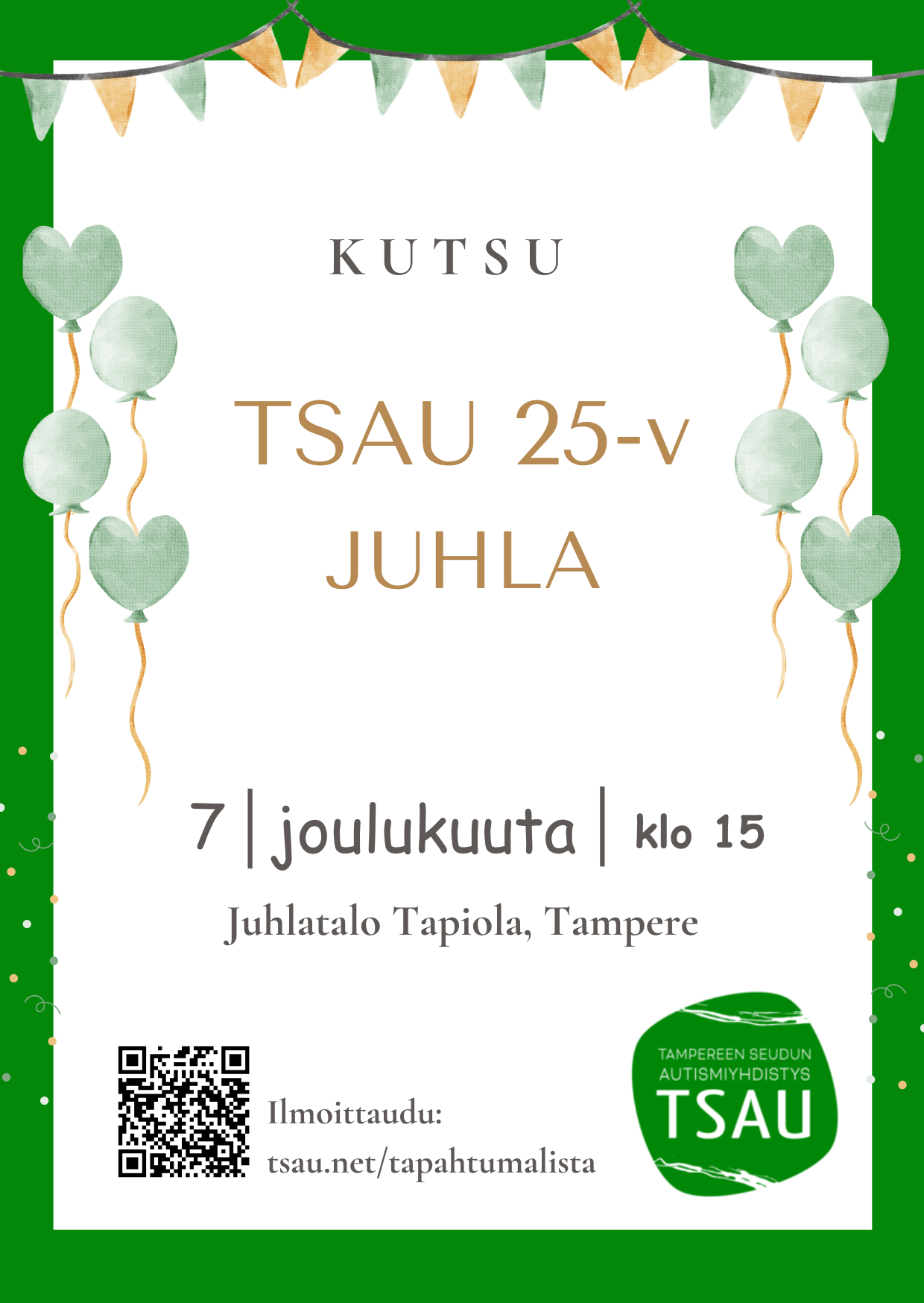 Yhdistyksemme TSAU ry täyttää joulukuussa 25-vuotta! Tervetuloa juhlimaan yhdessä. Paikka: Juhlatalo Tapiola, Karhunkatu 71, 33530 Tampere Aika: 7.12.2025 klo 15-17 Tilaisuudessa on luvassa yhteistä…