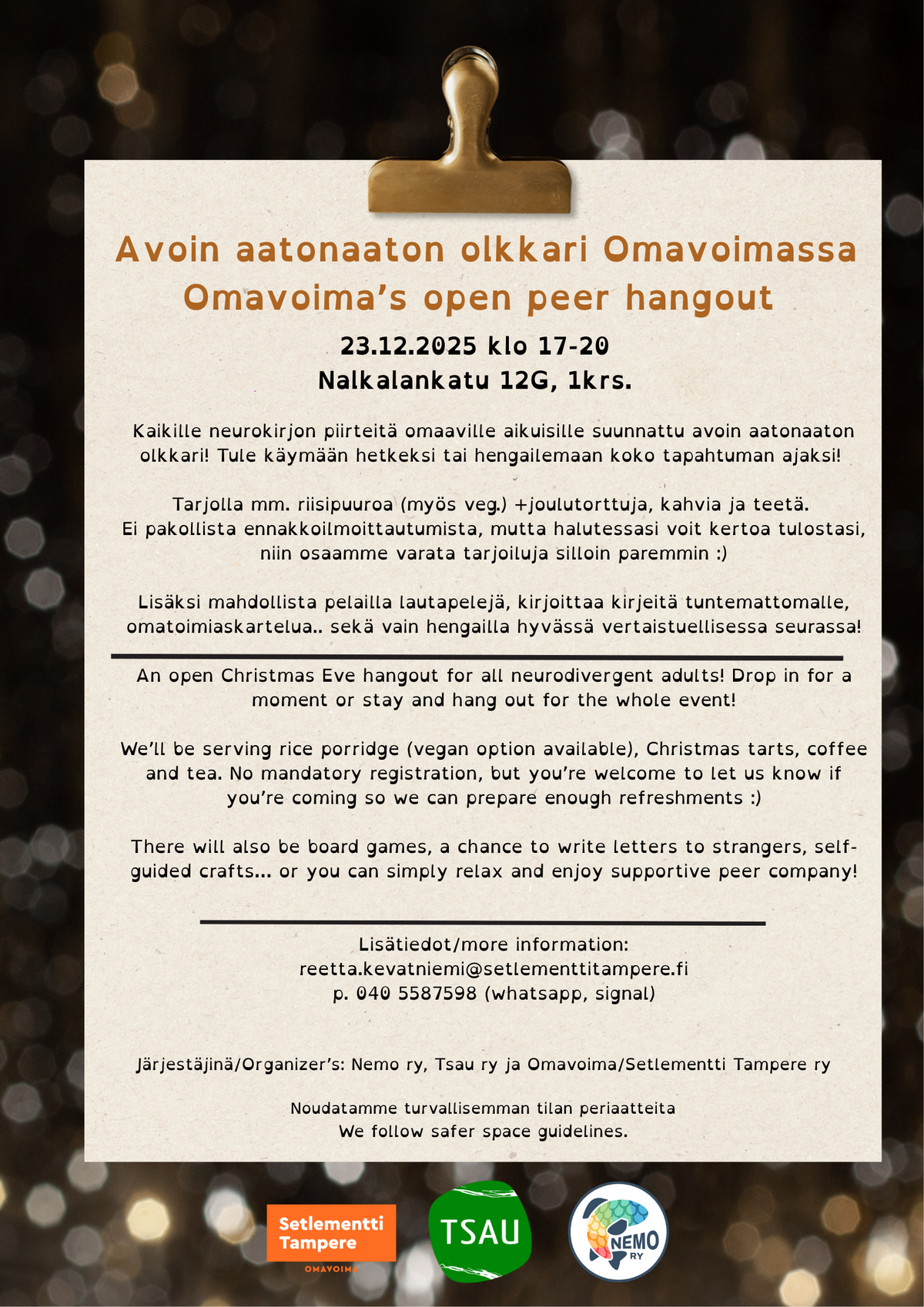 Jouluinen olkkaritapaaminen kirjon aikuisille