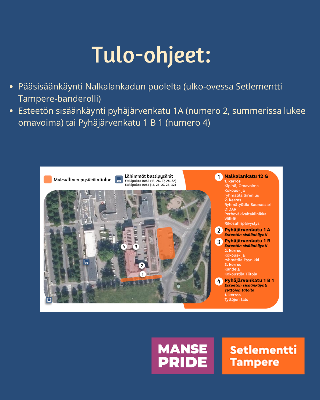 Paikka: Setlementtitalo, 1. kerros (Nalkalankatu 12G, Tampere)