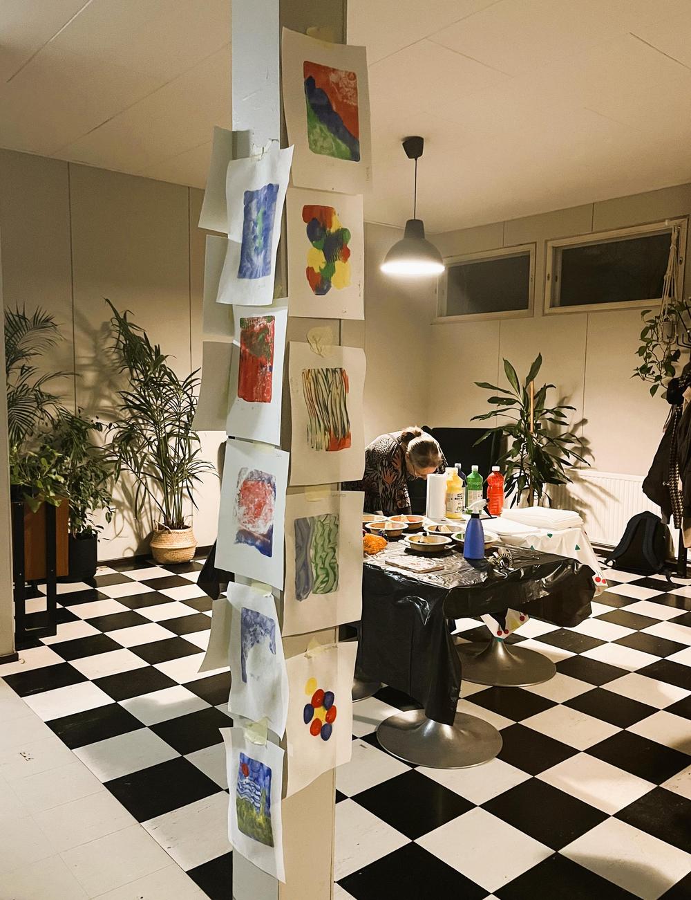 VIeraiden käyttöön oli varattu hiljainen huone aulan yhteyteen ja aulassa toimi koko juhlan ajan vieraiden käytettävissä toiminnallinen taide pop-up-piste, jossa kuvataideopettaja/erityisopettaja Terhi Pönnin ohjauksessa vieraat saivat taiteilla oman värikkään taideteoksen.